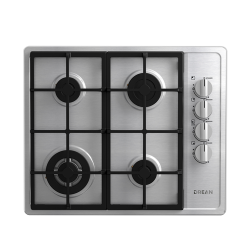 ACERO INOXIDABLE - 4 HORNALLAS - PARRILLA HIERRO FUNDIDO - SEGURIDAD GAS STOP - ANCHO 582MM - ALTO 56MM - PROF 520MM - DIMENSIONES DE ENCASTRE: ANCHO 560MM X PROF 490MM