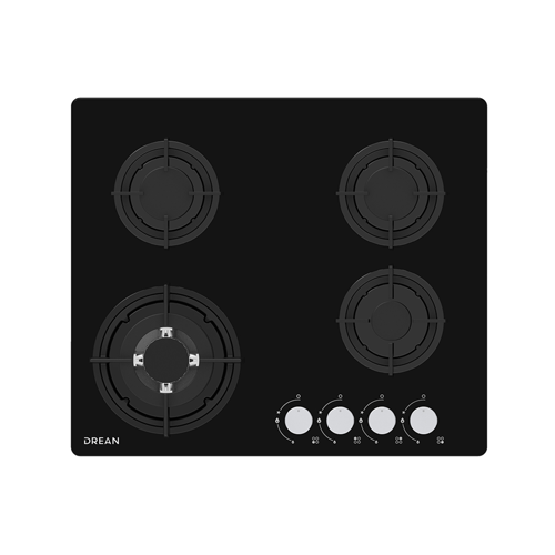 Anafe a gas empotrable. Color Negro. 4 zonas de cocción multitamaño. Hornalla triple ring y 2 semi rápidas. Encendido eléctrico a una mano. Superficie de vidrio templado. Control por perillas metálicas. Rejillas de hierro fundido en color negro. Válvula de seguridad. Kit de conversión a gas LP.
